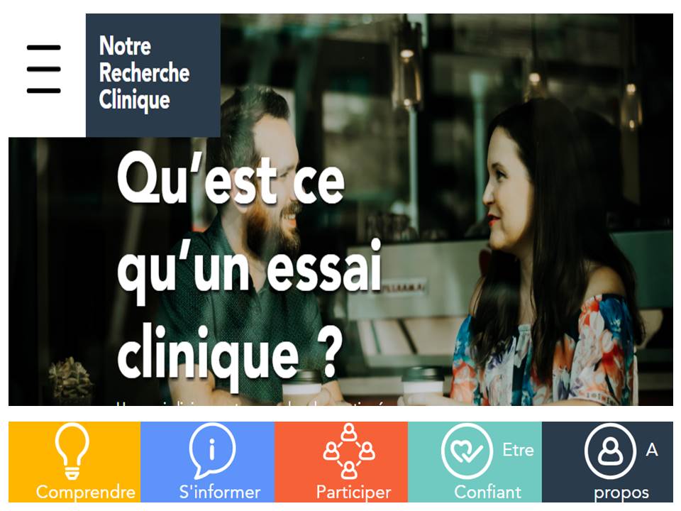 Structuré en 4 grands chapitres (Comprendre, S'informer, Participer, Etre confiant), le site a été conçu comme un outil d'information pédagogique sur les essais cliniques, accessible et compréhensible pour tous.